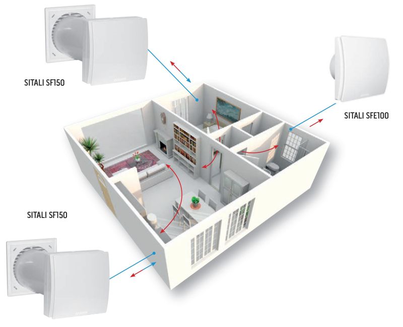 Подходящо оразмерената домашна вентилация гарантира постоянно качество на вътрешния въздух за комфорта и здравето на обитателите в сградата. Периодичната поддръжка на противопраховия филтър, монтиран в уреда, спомага за поддържането на по-здравословен въздух в помещенията. Телата са оборудвани с високоефективен безчетков мотор. Предварително затопленият външен въздух, който се вкарва в помещението чрез телата, ограничава необходимостта от допълнителна отоплителна система. Двете тела могат да се синхронизират за максимален акустичен комфорт и са оптимизирани за непрекъсната работа.