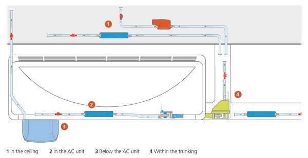 Автоматична мини помпа за извеждане на конденз от вътрешното тяло на климатик. Осигурява отвеждането на конденз в случаите, когато не е възможно да се оттича гравитационно. Високо качество и надеждност.